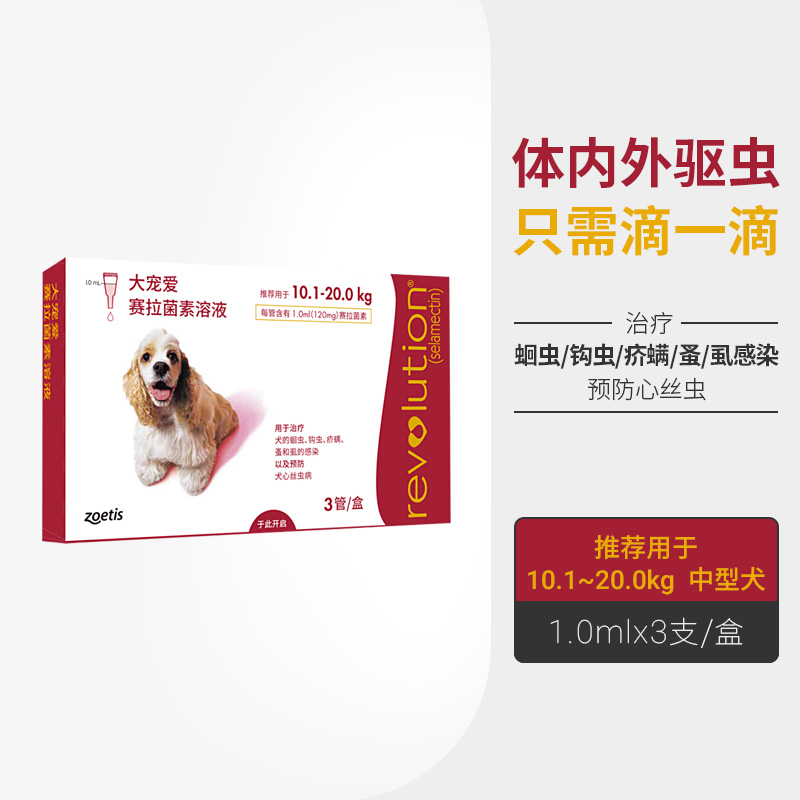 硕腾大宠爱zoetis 犬用内外驱虫 12% 1ml*3支装 适合体重10.1-20kg