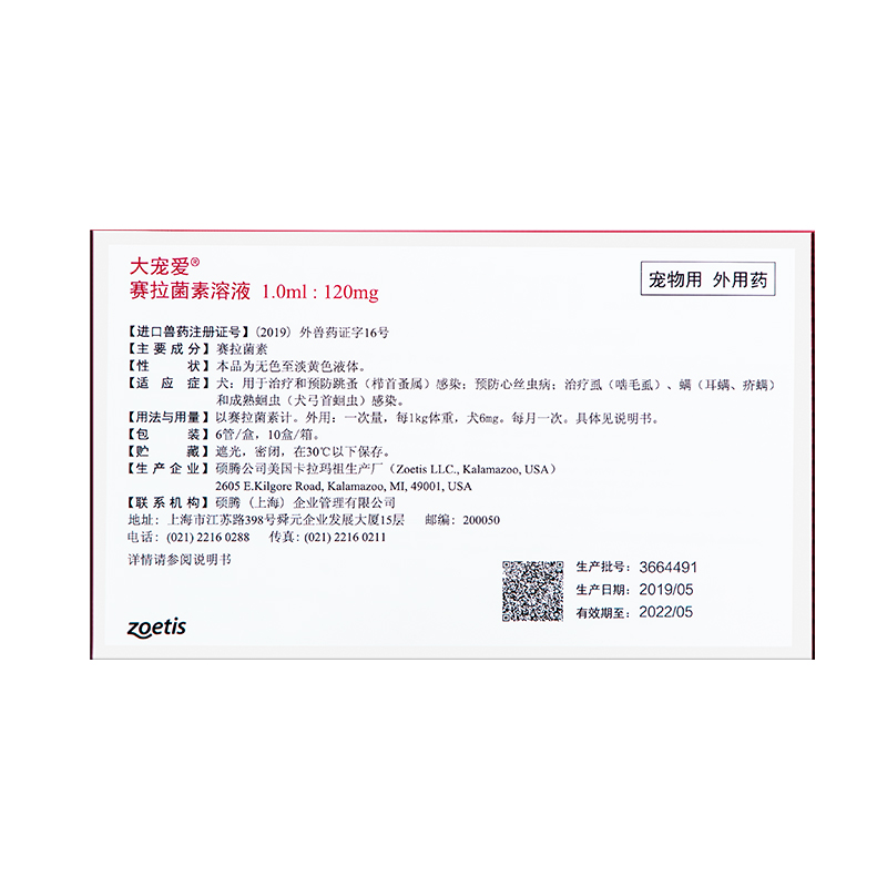 用法用量 外用,适用20~40磅,一次一剂,每月1次