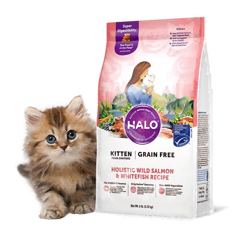 美国进口Halo自然光环 野生三文鱼&白鱼味全价无谷幼猫粮10lb/4.54kg