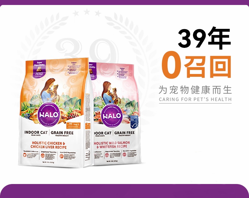 美国进口Halo自然光环 野生三文鱼&白鱼味全价成猫粮10lb/4.54kg
