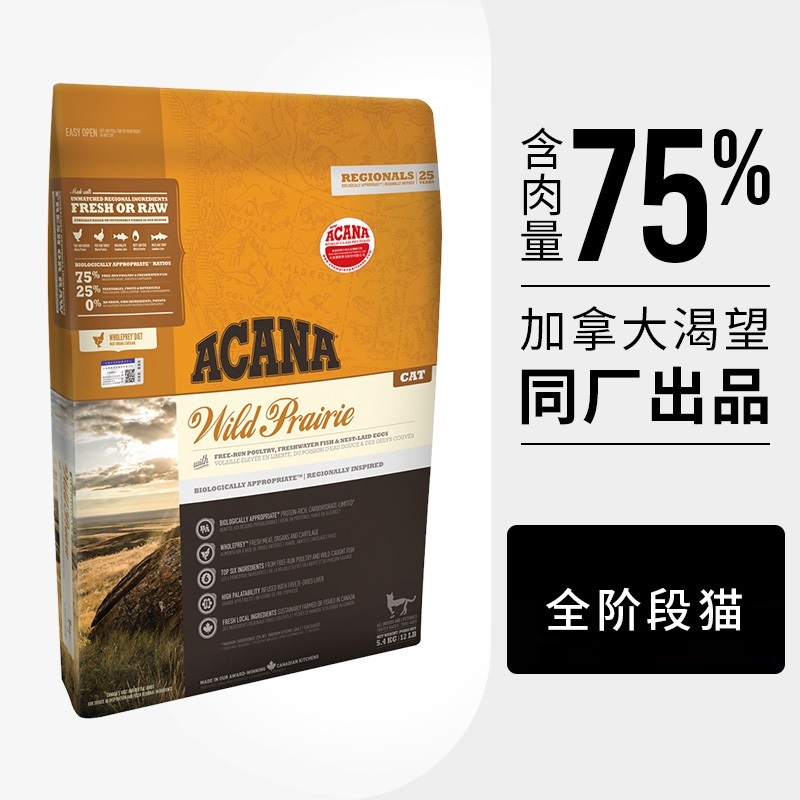 加拿大原装进口 爱肯拿Acana 无谷鸡肉鱼配方全猫粮 1.8kg