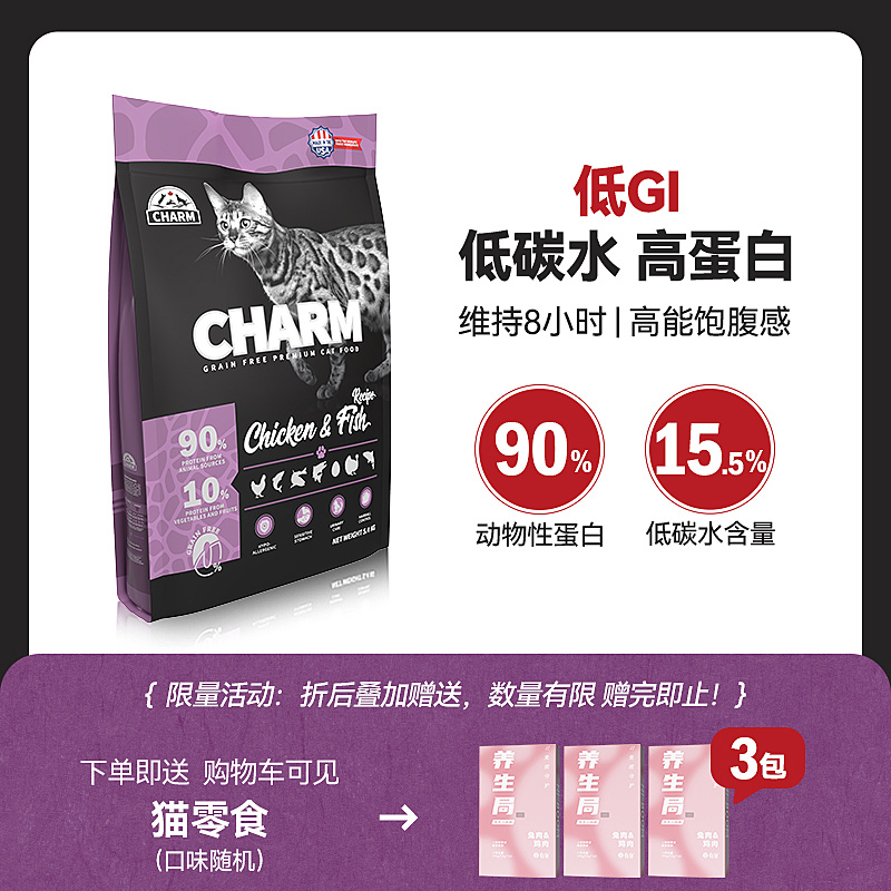 【赠3盒猫条】野性魅力CHARM 鸡肉鱼配方猫粮 5.4kg