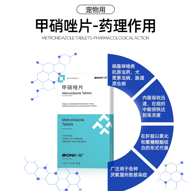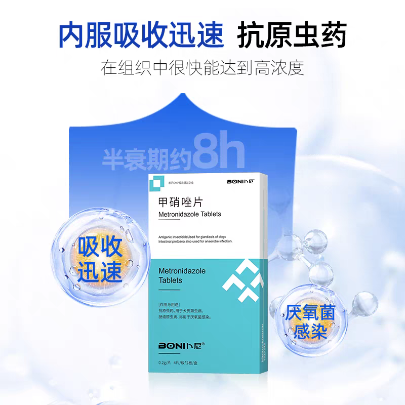 【下单后需补充处方信息】卜尼 犬猫通用甲硝唑片 0.2g*8片
