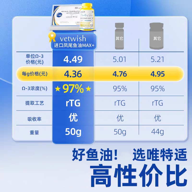 vetwish唯特适 犬用 凤尾鱼鱼油97%max+ 50g/100粒