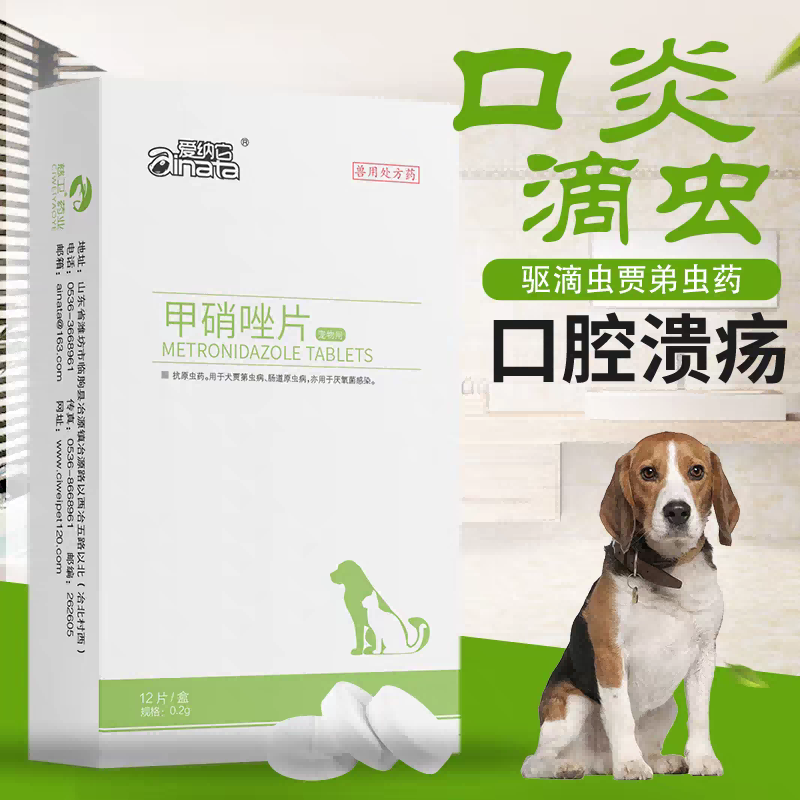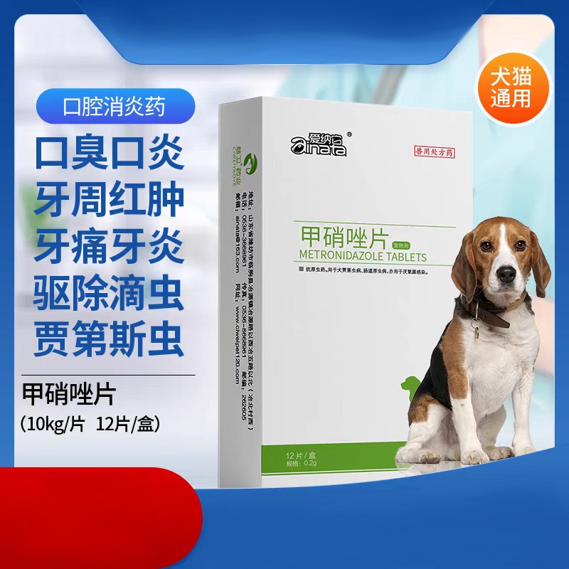 用法用量 以甲硝唑计。内服:一次量,每1kg体重,犬25mg。(建议20斤吃1粒)或遵医嘱。