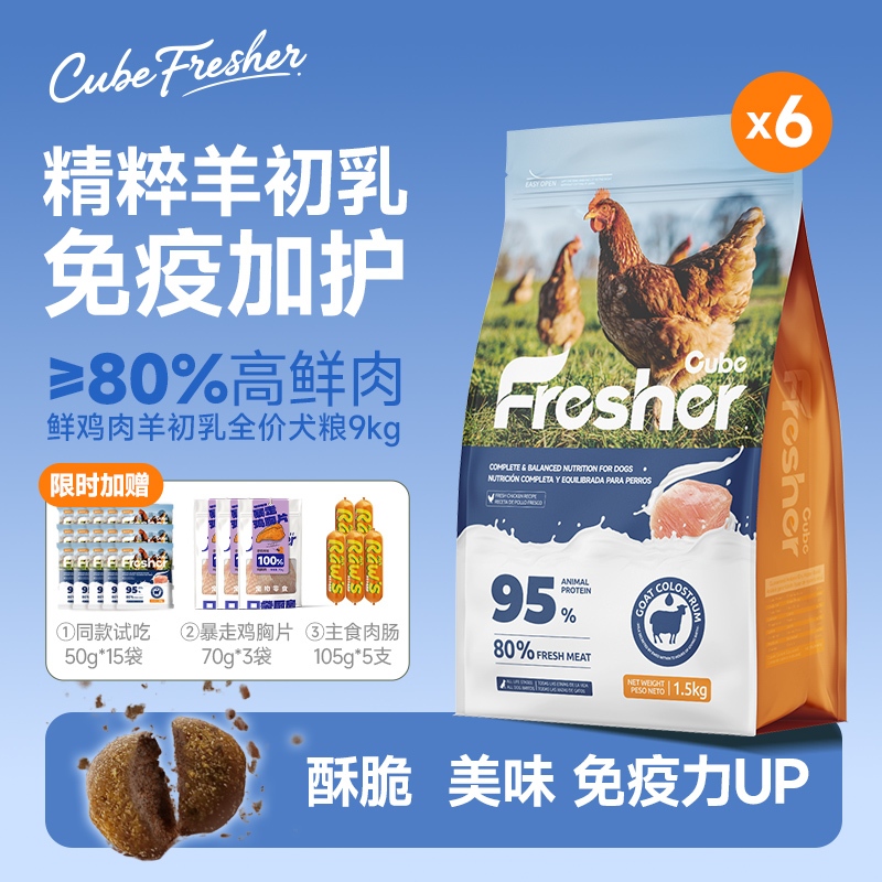 口袋厨房cube fresher 鲜鸡肉羊初乳全价犬粮9kg(1.5kg*6袋)