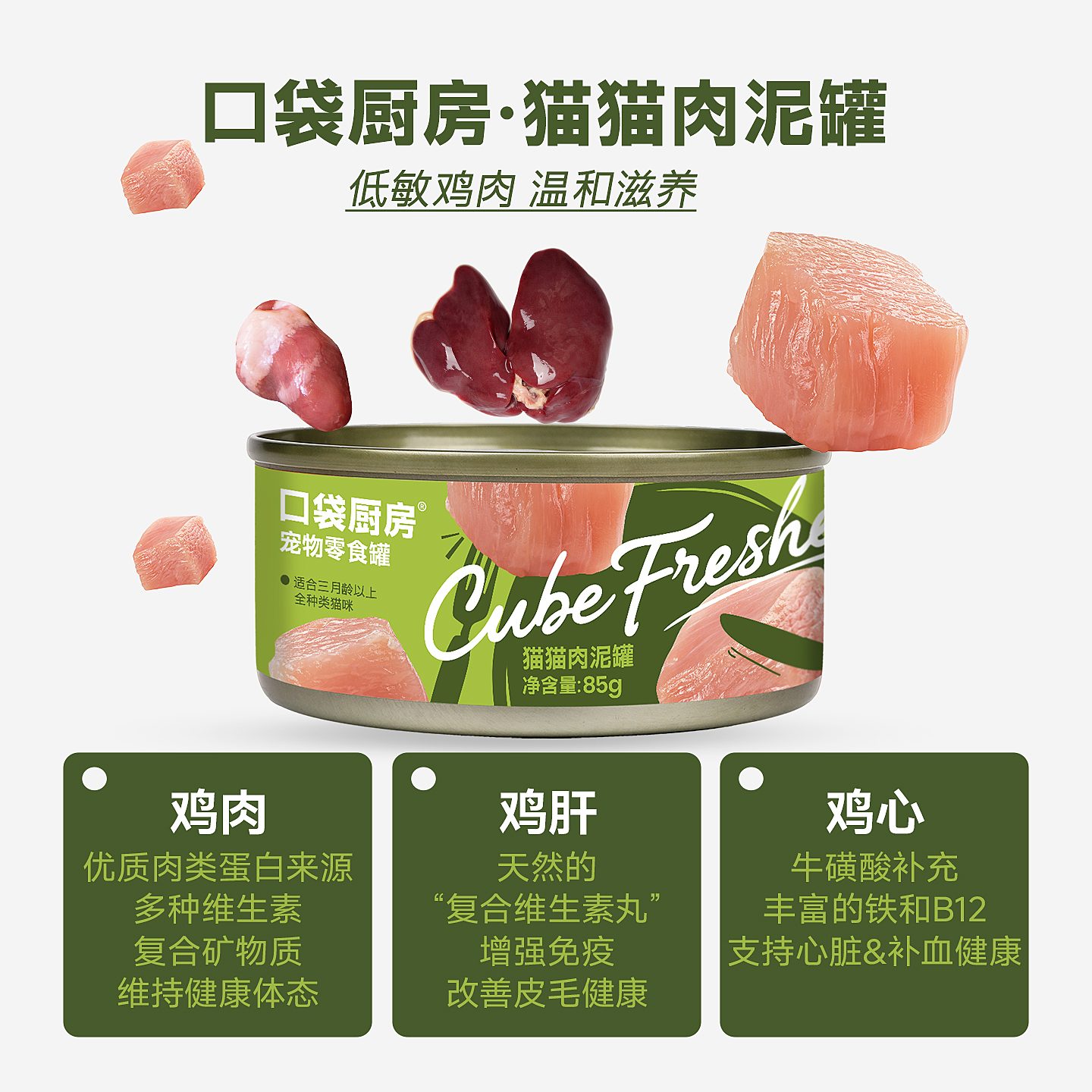 口袋厨房Cube Fresher 猫用零食罐 鸡肉肉泥罐 85g