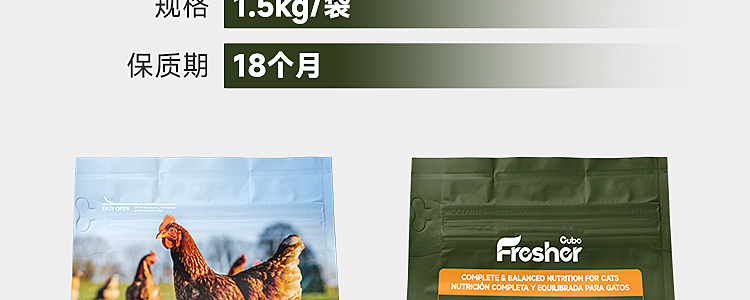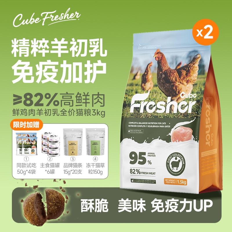 口袋厨房cube fresher 鲜鸡肉羊初乳全价猫粮3kg(1.5kg*2)