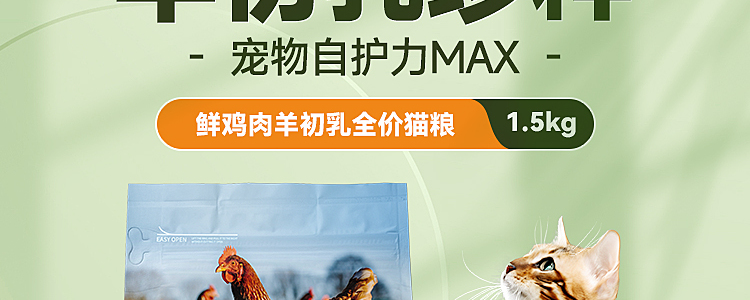 82%高鲜肉猫粮 酥化工艺酥脆颗粒 乳黄金羊初乳添加 增强免疫力