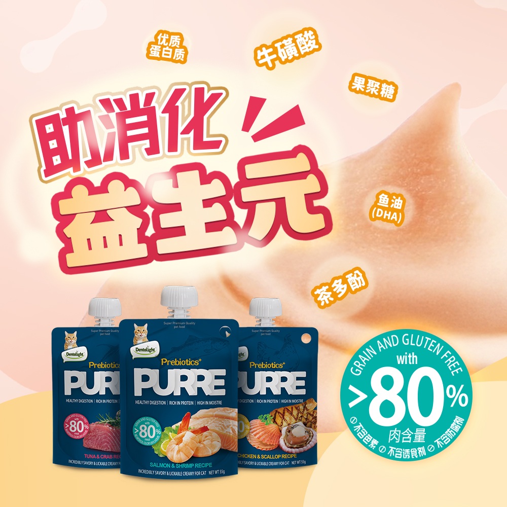 Dentalight宠物零食 益生元肉酱包 金枪鱼+蟹肉 55克/袋
