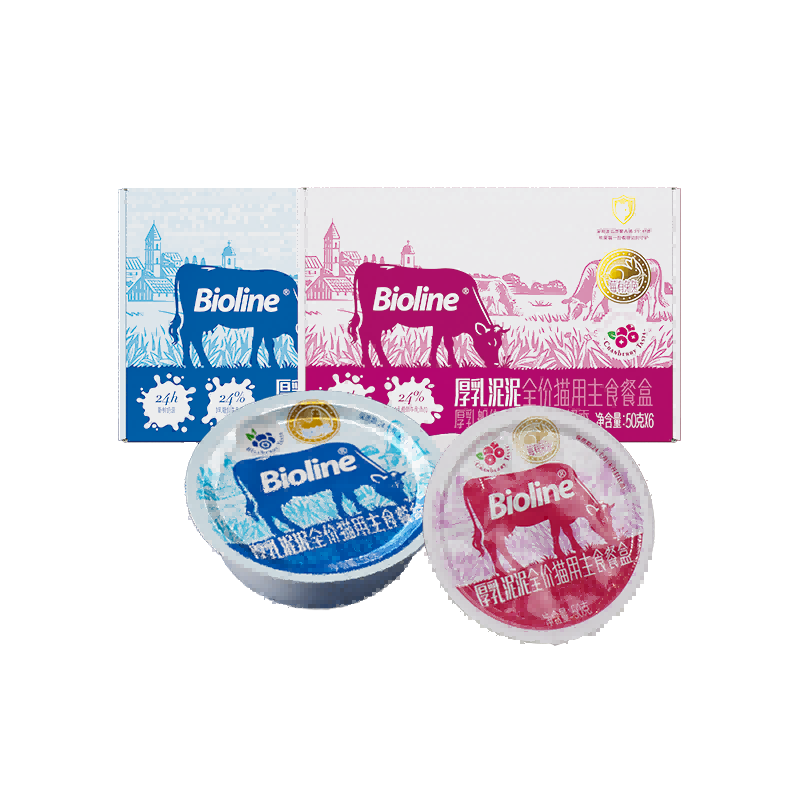 Bioline厚乳泥泥全价猫用主食餐盒莓有兔兔50g*6