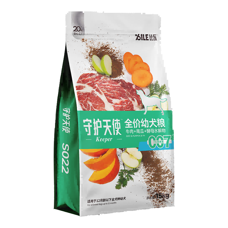 【新老包装随机发货】比乐 守护者系列牛肉+南瓜+酵母水解物配方幼犬原味粮 15kg