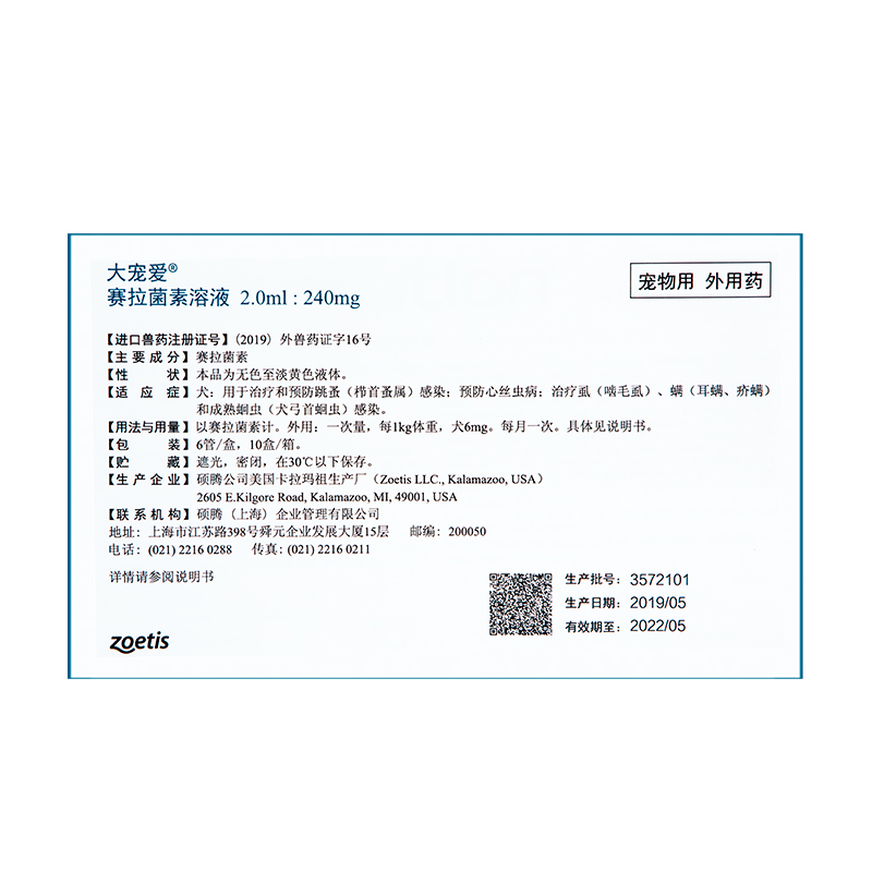硕腾大宠爱zoetis 犬用内外驱虫 12% 2ml*6支装 适合体重20.1-40kg