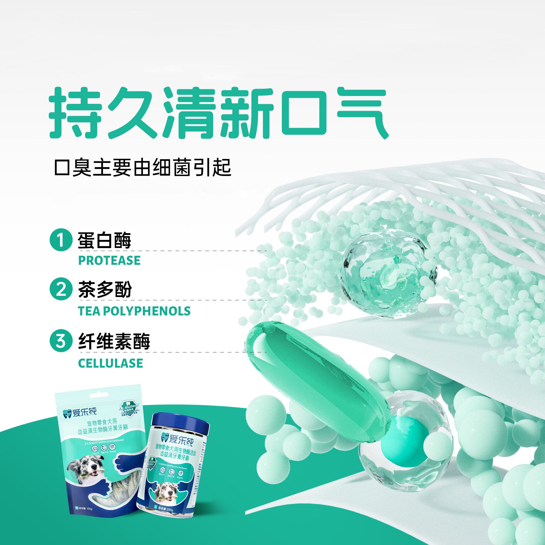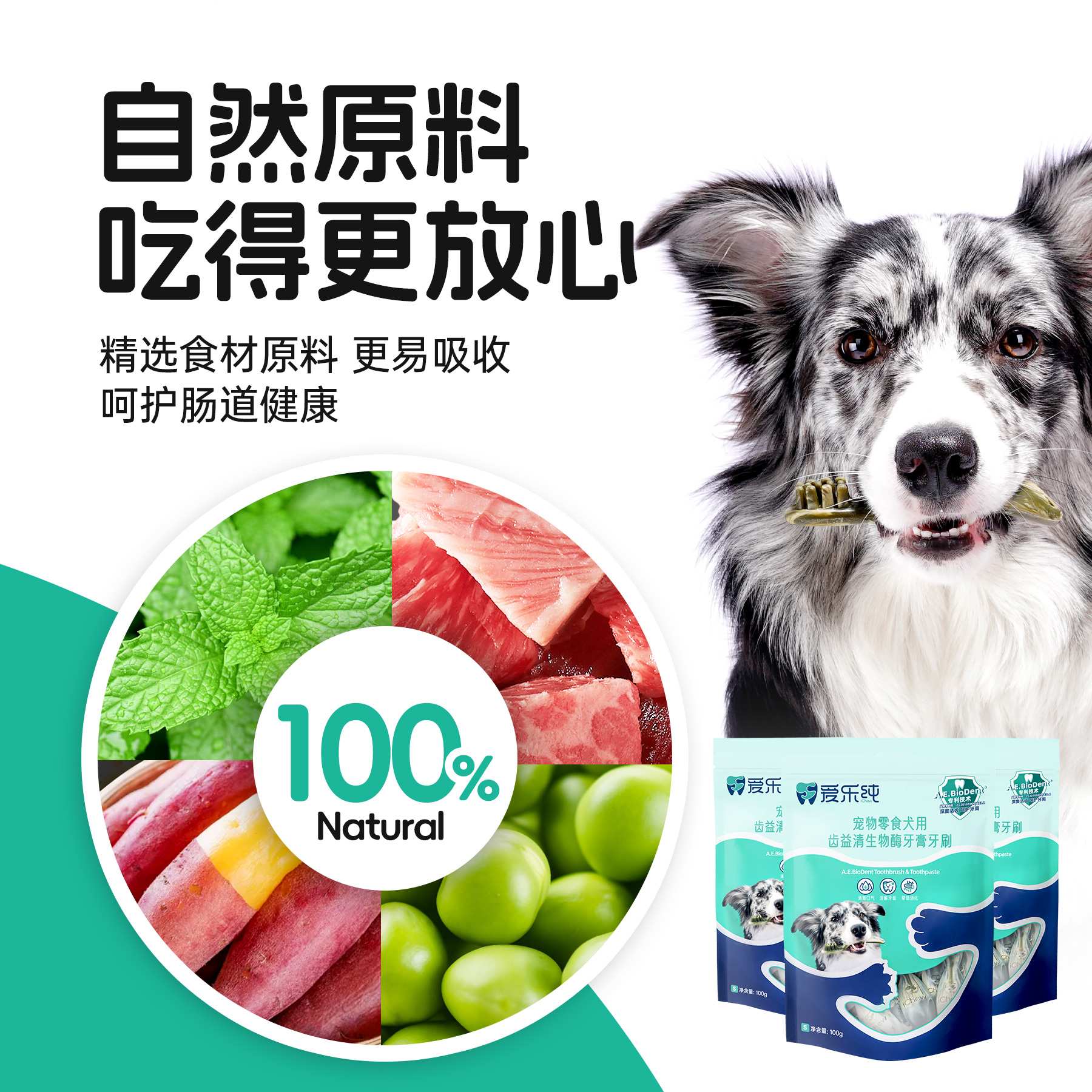 iChew爱乐纯 狗狗专用齿益清生物酶洁齿牙膏牙刷 XS 15支/100g