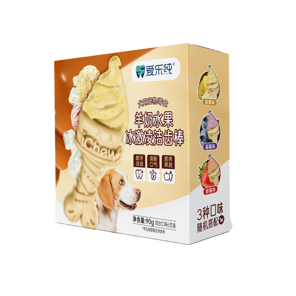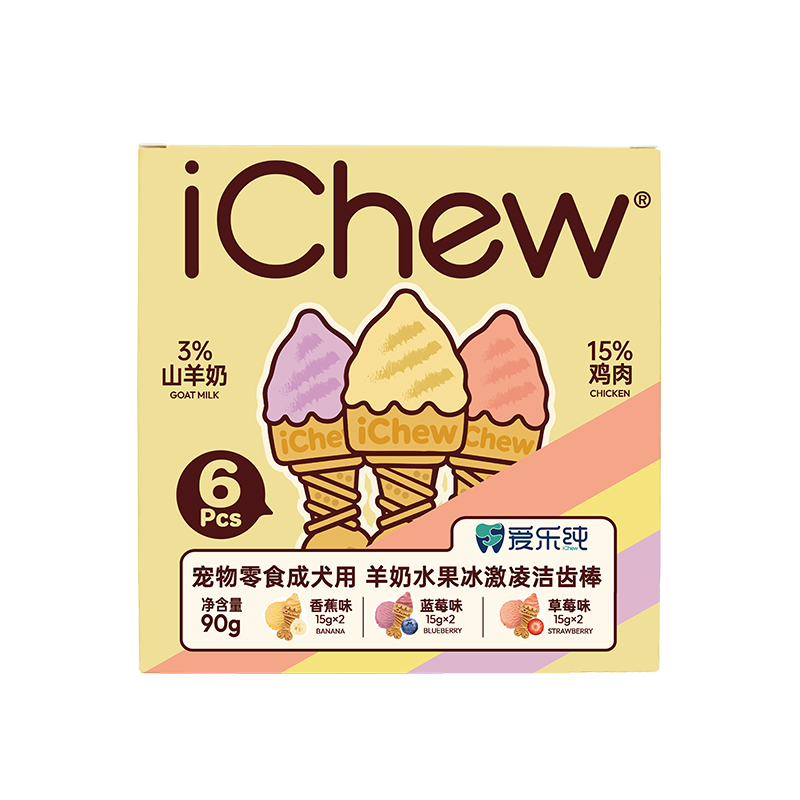 iChew爱乐纯 羊奶水果冰激凌 6支,三种混合口味 磨牙洁齿 6支*15g