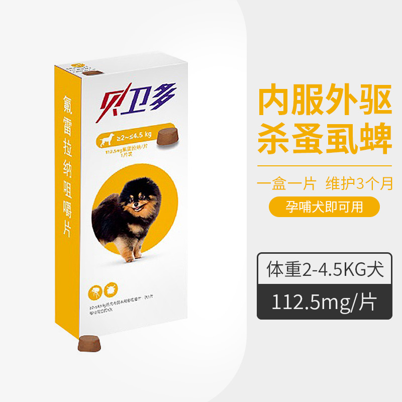 [清仓] 默沙东旗下品牌 贝卫多Bravecto 犬用氟雷拉纳体外驱虫咀嚼片1片装 适合体重2-4.5kg