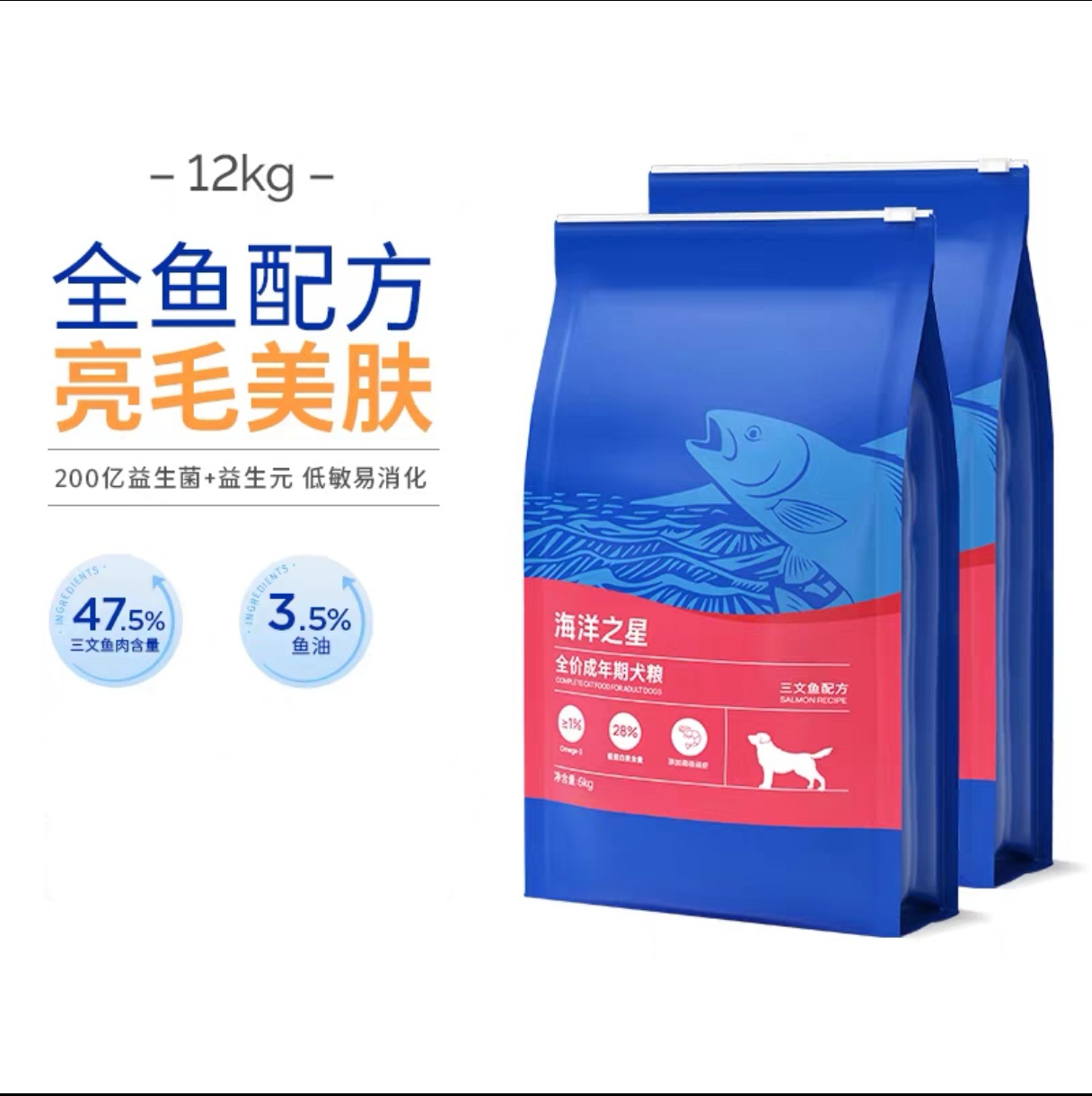 海洋之星全价成年期犬粮 三文鱼配方 6kg*2