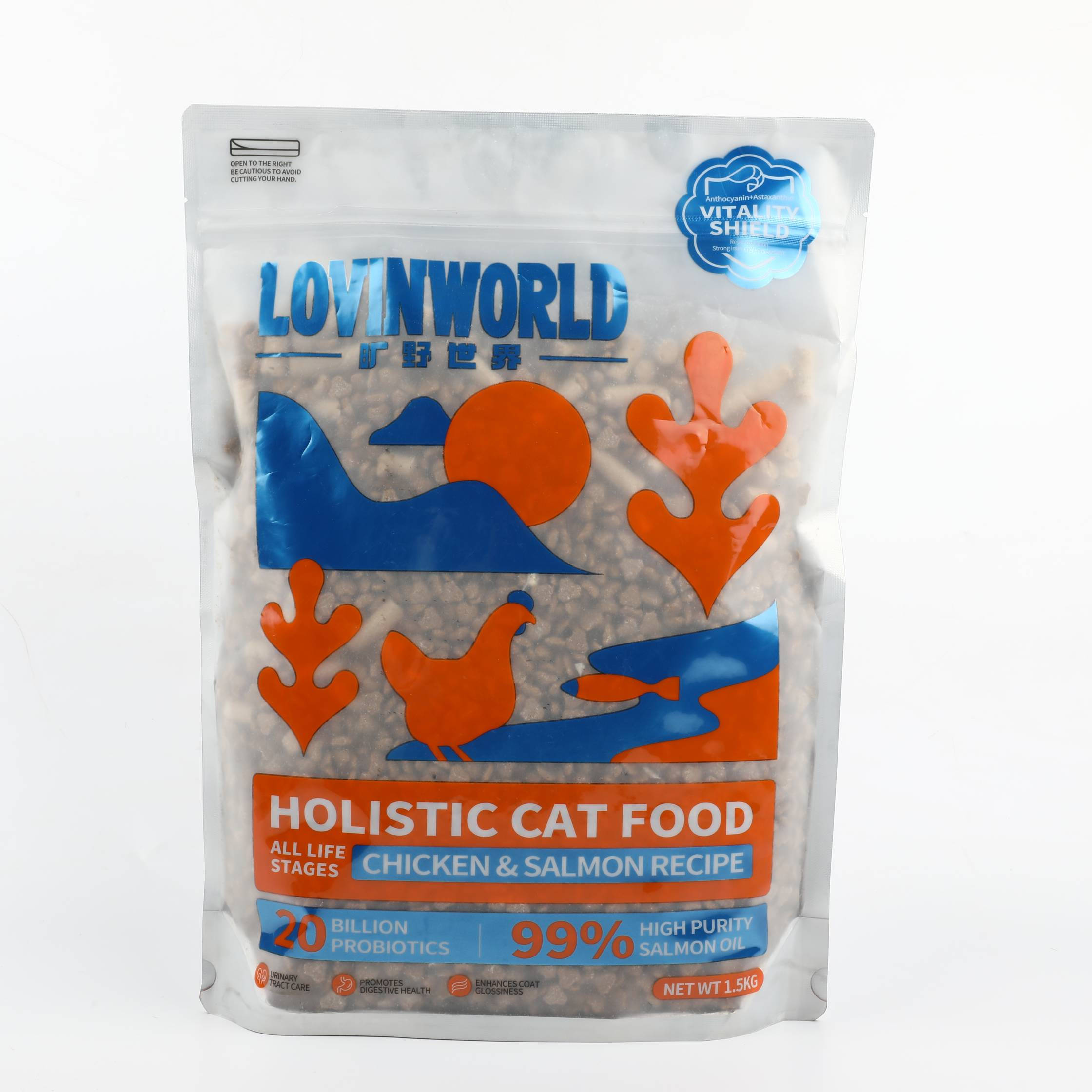 【出口品质】旷野世界 全价全期鸡肉三文鱼猫粮 1.5kg