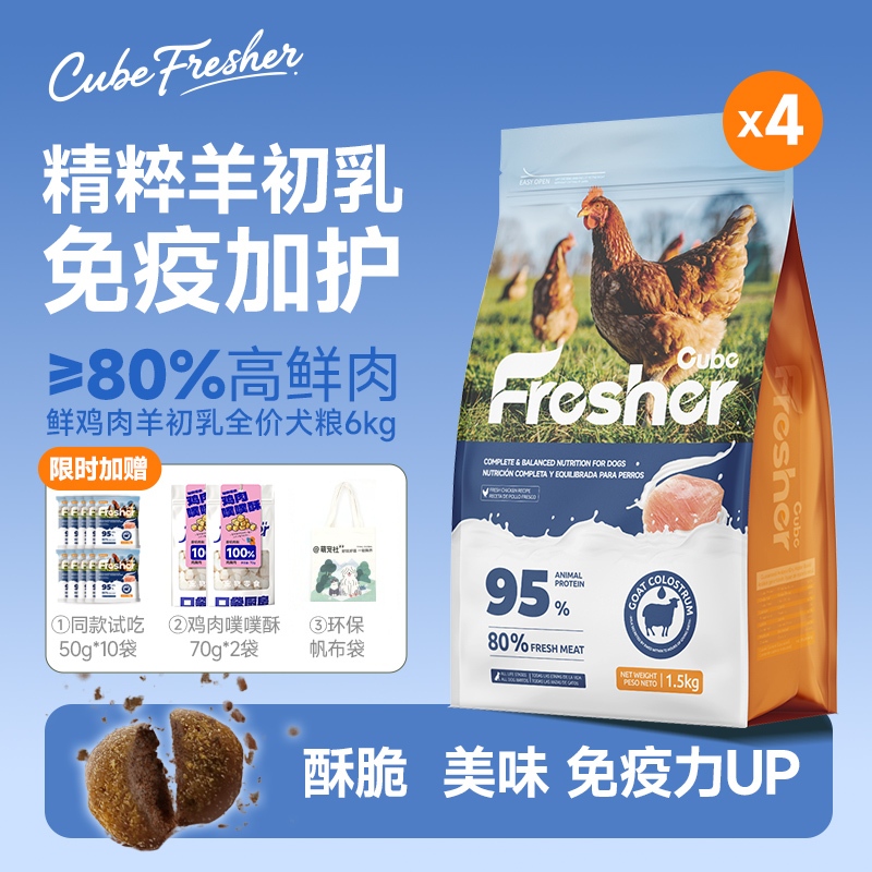 口袋厨房cube fresher 鲜鸡肉羊初乳全价犬粮 6kg(1.5kg*4袋)