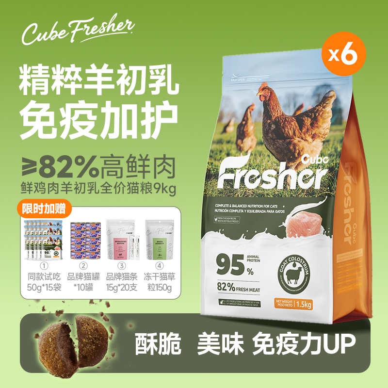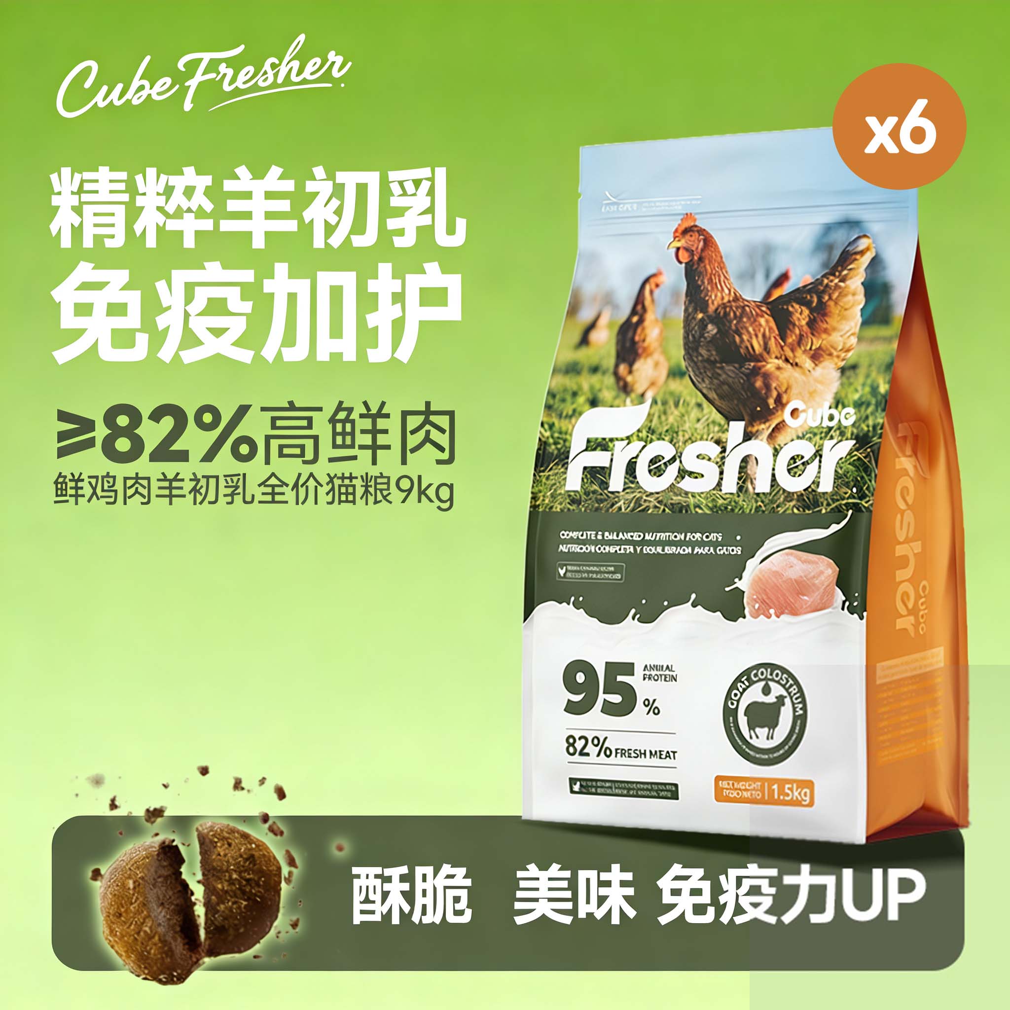 口袋厨房cube fresher 鲜鸡肉羊初乳全价猫粮9kg(1.5kg*6袋)