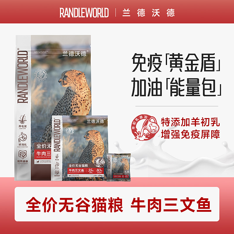 兰德沃德RANDLE WORLD 牛肉三文鱼全价猫粮 试吃装50g