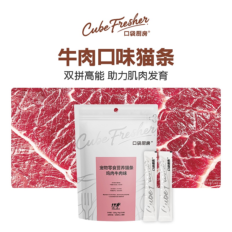 口袋厨房 宠物零食猫条 牛肉口味 300g(15g*20支)
