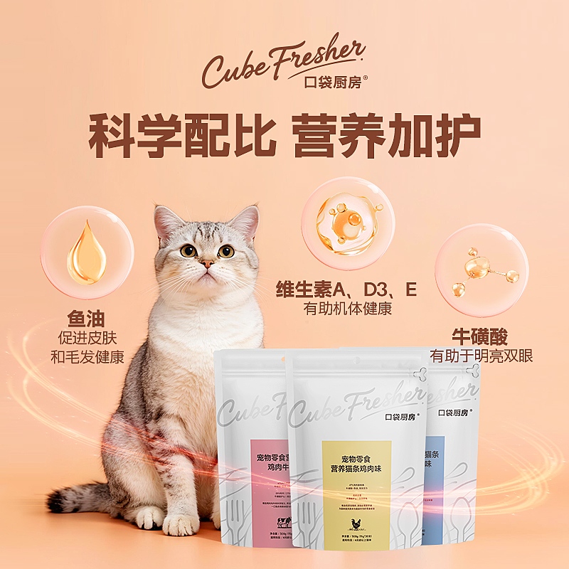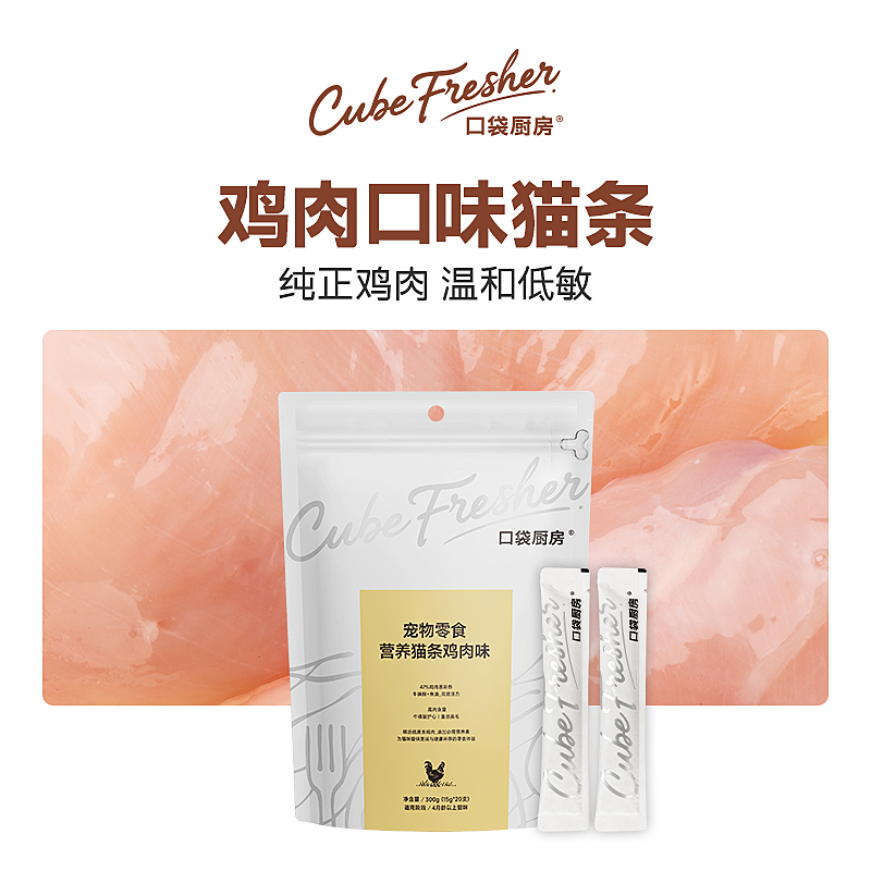 口袋厨房 宠物零食猫条 鸡肉口味 300g(15g*20支)