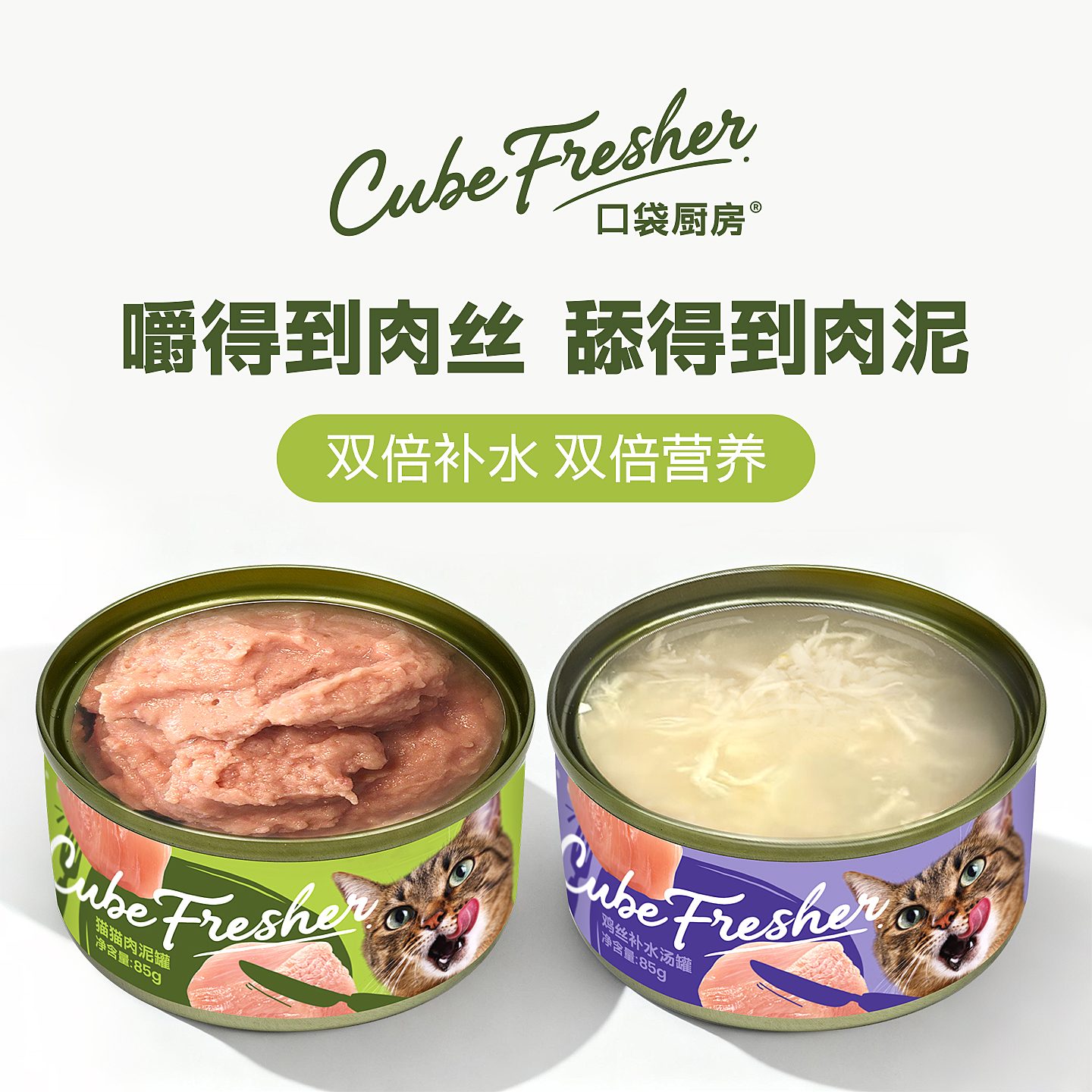 【12罐】口袋厨房Cube Fresher 猫用零食罐 鸡丝汤罐 85g*12