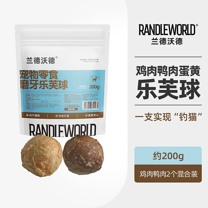 兰德沃德 宠物零食 汪汪磨牙乐芙球 鸡肉+鸭肉2个入(200g左右)