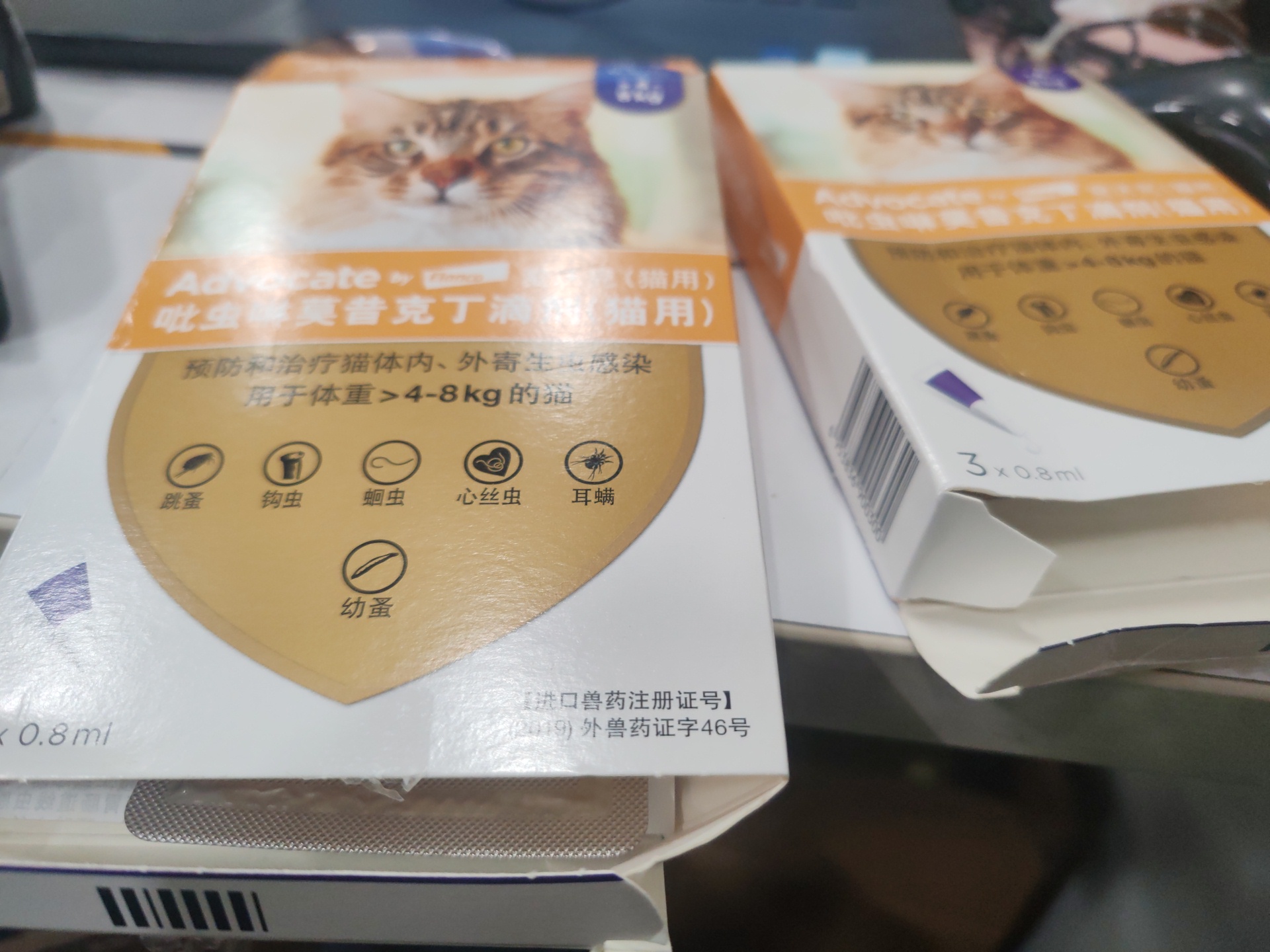 [清仓] 德国原装进口拜耳Bayer 爱沃克 L号猫用体内外驱虫滴剂 0.8ml*3支 适用体重4-8kg