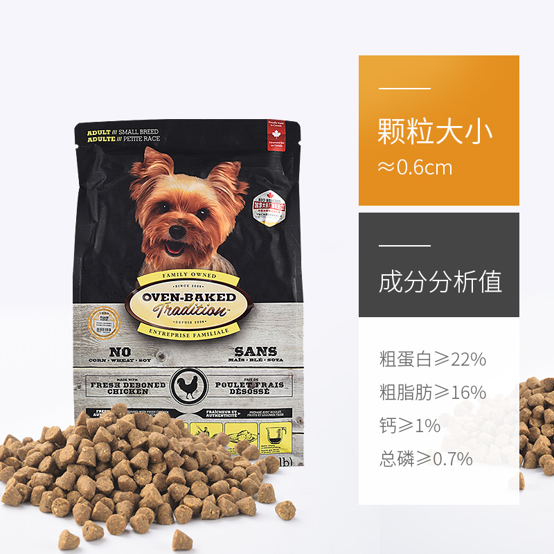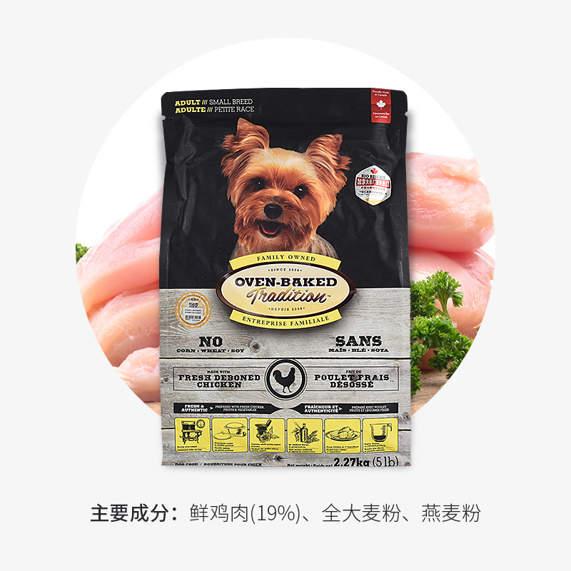 欧恩焙Oven-Baked 北美走地鸡配方成犬粮 细颗粒 5磅(2.27kg)