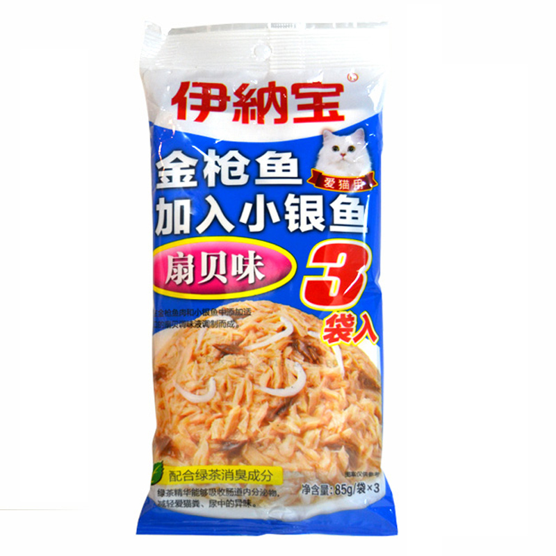 伊纳宝 金枪鱼加入小银鱼扇贝味猫零食 85g*3袋