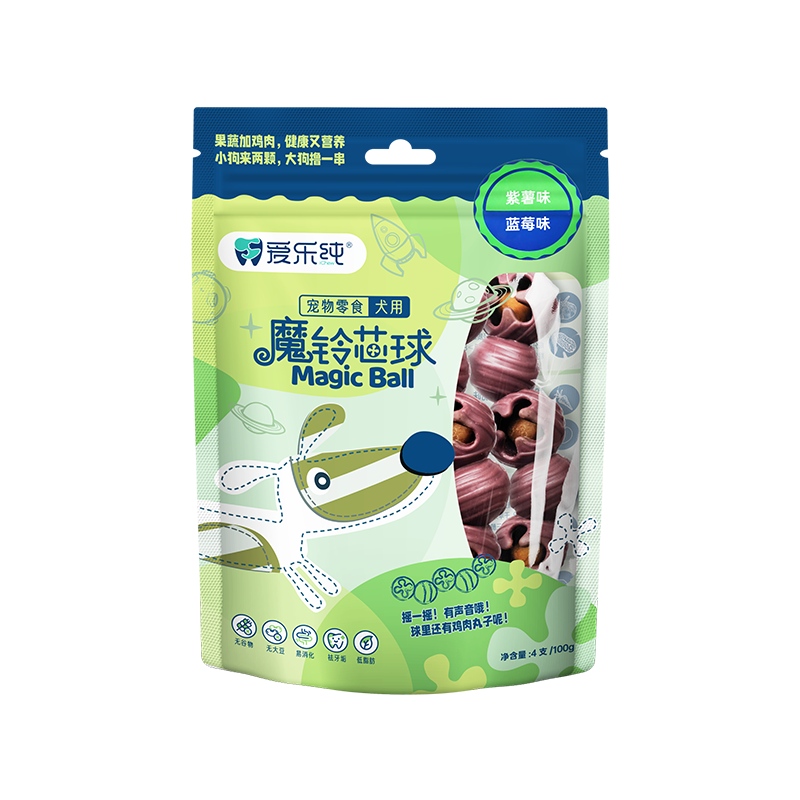 iChew爱乐纯 田园系列 魔铃芯球狗零食 紫薯&蓝莓味 4支/100g